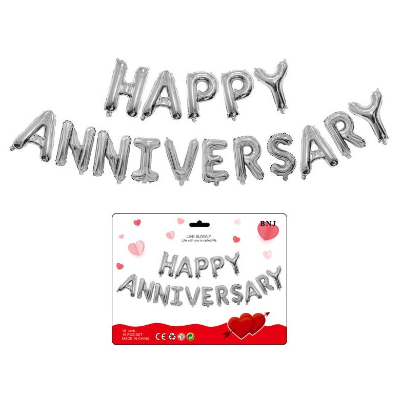 - Happy Anniversary Balloons Silver Foil Party Decoration Fun Wedding 16" Letters Happy Anniversary Balloons Silver Foil Party Decoration Fun Wedding 16" Letters
