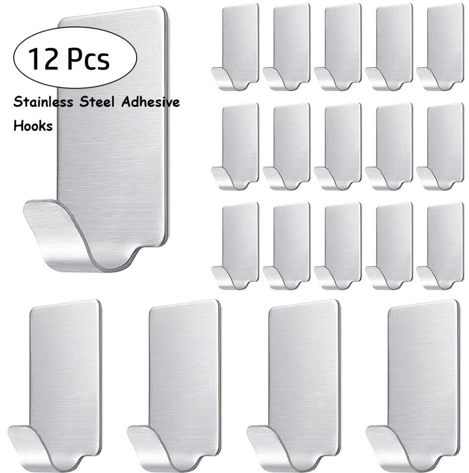 - 12 Coat Hooks Self Adhesive Sticky Heavy Duty Wall Seamless Stainless Steel 12 Coat Hooks Self Adhesive Sticky Heavy Duty Wall Seamless Stainless Steel