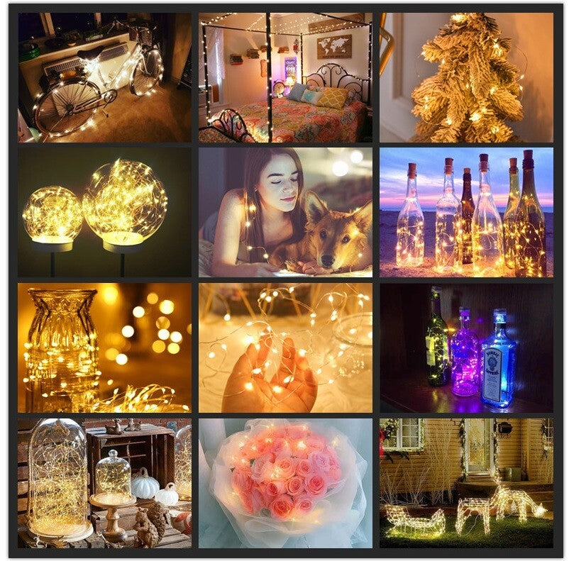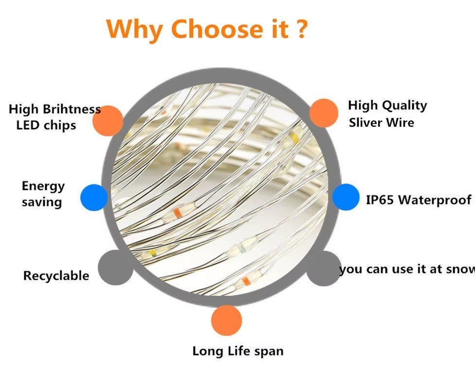 - 16 color-changing string lights: use the remote or the controller on the string to switch between different colours like Red, green, blue, white, orange, emerald green, sky blue, yellow, light green, cyan, Lemon, light blue, Purple, fuchsia, pink. Flexible and Sturdy Copper Wire Lights: Silver copper wire is easy to bend into any shape and offers multiple uses, including wrapping around Christmas trees, gifts, stairs, railings, beds, or hanging from the ceiling, or placing in a mason jar.